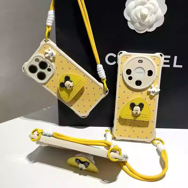 This adorable Mickey - themed lanyard phone case is incredibly cute😜! With a bright yellow base color paired with playful polka - dot patterns, it exudes a full sense of vitality. The unique Mickey head decoration on the phone case, along with the super - cute Mickey Mouse palm - shaped embellishment, adds a lot of detail. The equipped yellow lanyard is both stylish and practical, making it convenient for you to carry your phone at any time. Whether you're shopping, traveling, or commuting, it can easily prevent the phone from slipping, protecting your device, and making you stand out in the crowd~✨