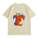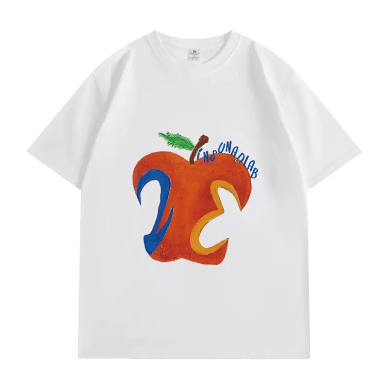 This VINESU white T - shirt features an apple pattern drawn with vintage abstract strokes. The contrasting - color number “23” breaks the routine, full of artistic flavor. The apple element brings a fresh and vibrant touch, combined with the unique font design. The loose fit suits daily wear, blending vintage and trend, art and practicality. Wearing it easily creates a casual yet distinctive dressing style, an eye - catching item to show personal aesthetic.