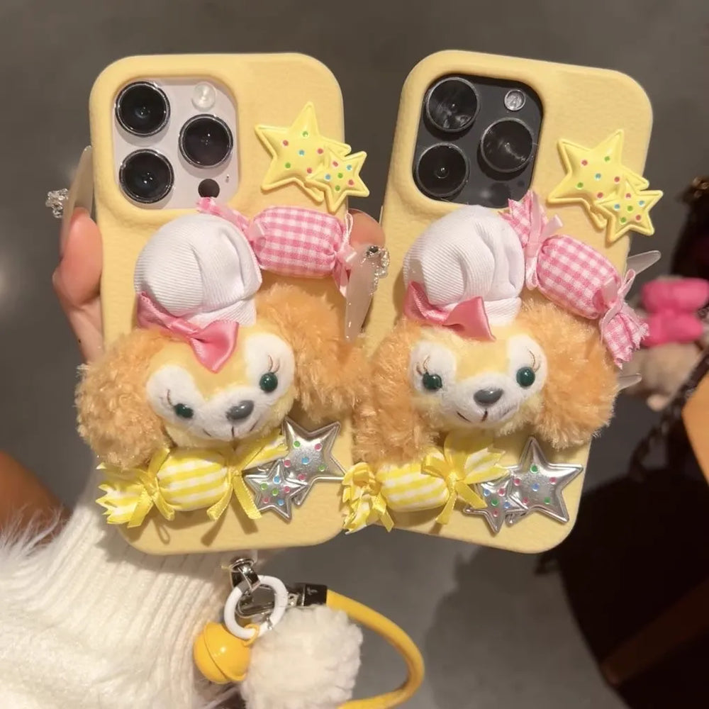 Warning! Your girly heart is about to explode! This Duffy Bear - themed phone case is a cuteness generator. The main body features a gentle creamy yellow color, which is healing enough on its own. The soft Duffy Bear plush image is three - dimensional and lifelike, as if it's coquettishly acting cute with you. Carefully matched small hats, bows, and twinkling star decorations are full of details, exuding delicacy and playfulness in every part. Not only is it extremely stylish, but it can also effectively cushion impacts, providing all - round protection for your phone. Whether you use it yourself or give it to your bestie, it's a perfect choice, helping you easily stand out in your social media circle!
