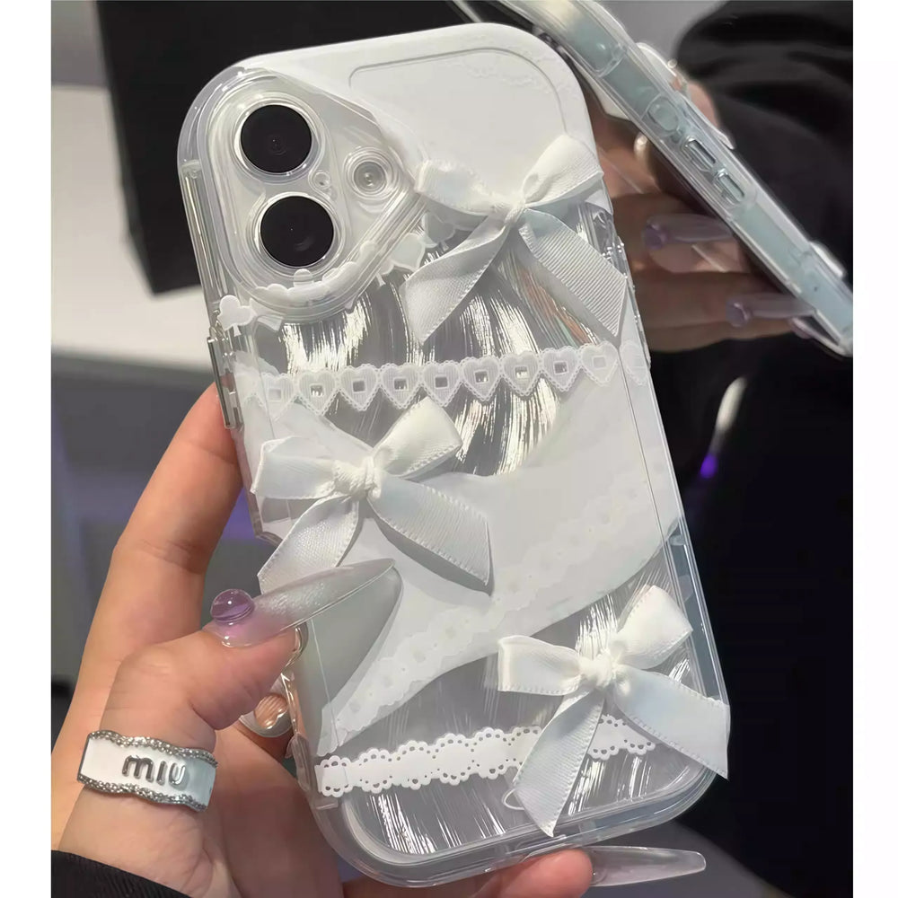 This phone case is a masterpiece of delicate craftsmanship. Adorned with exquisitely crafted white satin bows and intricate lace - like patterns, the clear design beautifully highlights the phone's form while infusing an air of sweet, girly elegance. Ideal for lovers of dainty and stylish accessories, it lends a truly charming allure to your device.